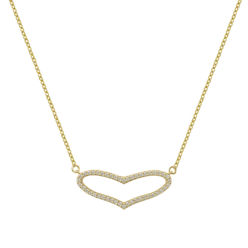 Το κεντρικό μοτίβο, μια κομψή «ανοιχτή» καρδιά σε οριζόντια διάταξη, είναι διακοσμημένο με micro-pave ζιργκόν που προσδίδουν μια διακριτική αλλά εντυπωσιακή λάμψη. Είναι το ιδανικό δώρο για εσάς ή για ένα αγαπημένο πρόσωπο, συμβολίζοντας την αγάπη που δεν γνωρίζει όρια.