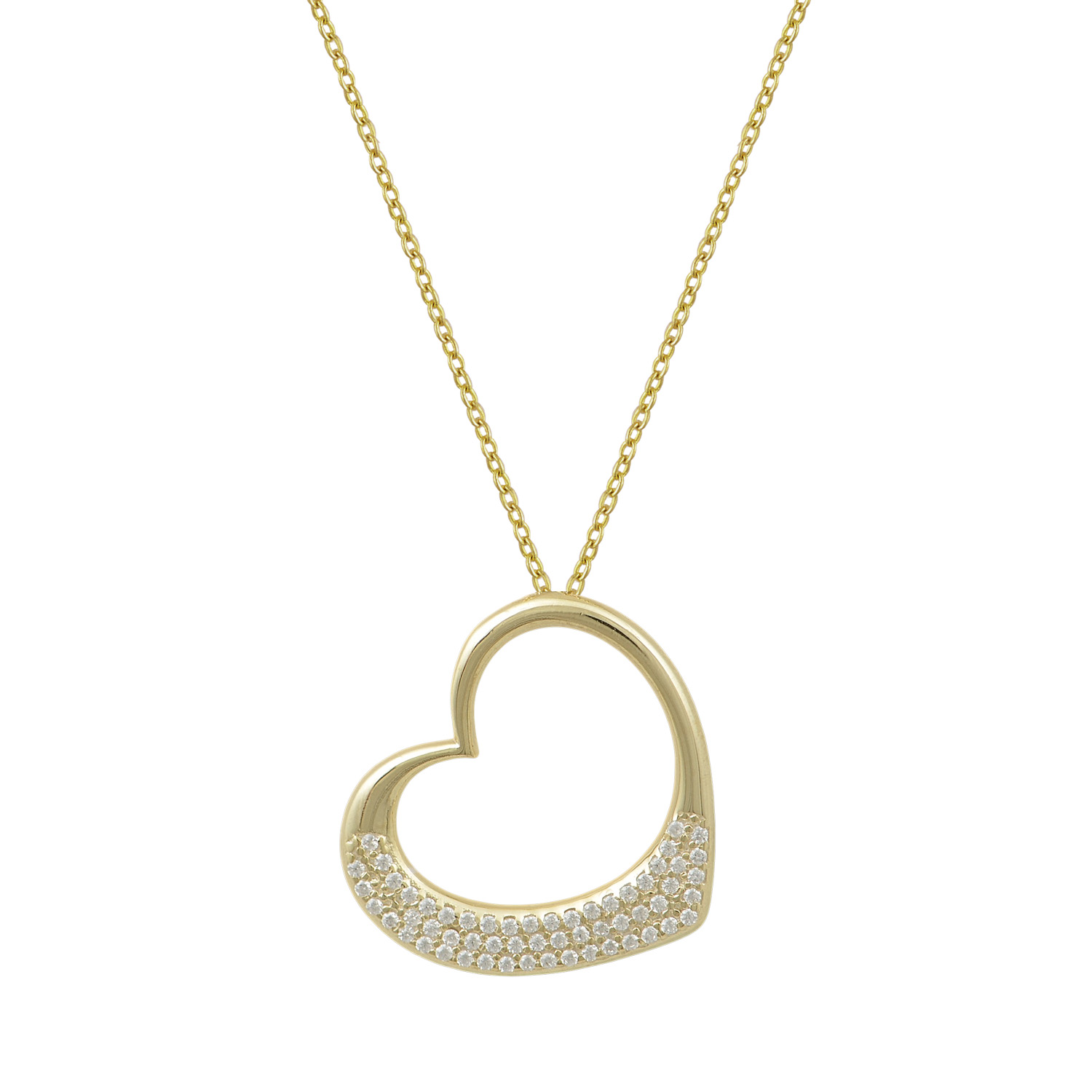 Ασημένιο Κολιέ “Glimmering Heart” με Pavé Ζιργκόν & Επιχρύσωση