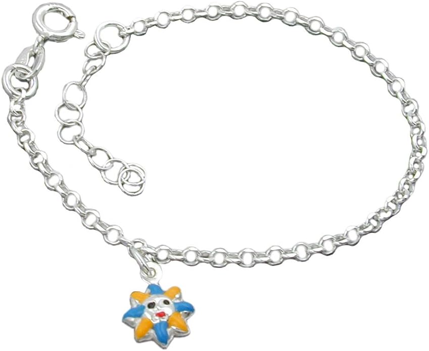 Παιδικό βραχιόλι με γούρι και ήλιο 9 χιλ., χρωματιστό βερνίκι και στις δύο πλευρές, + 3 εκατοστά απόσταση αλυσίδας για να μεγαλώνει