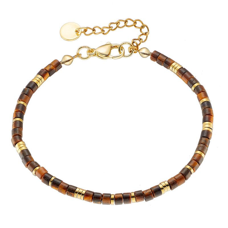 Βραχιόλι αντρικό με καφέ πέτρες ορυκτές δεμένες με ατσάλι