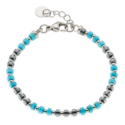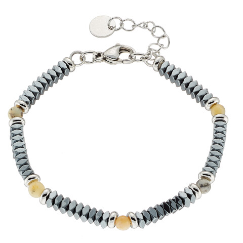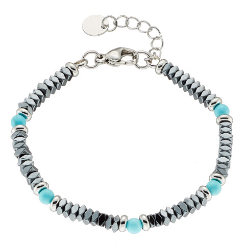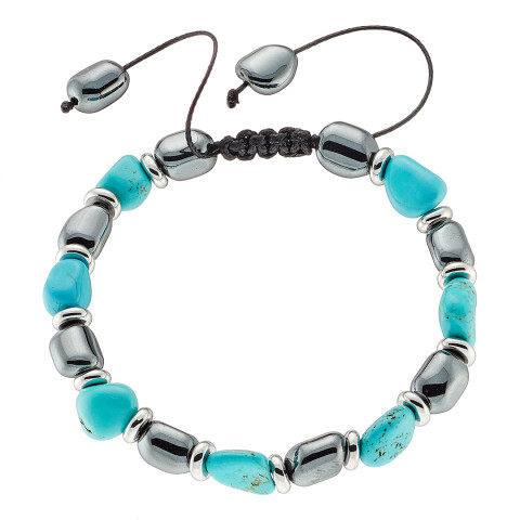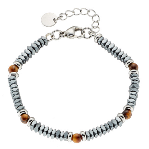 Βραχιόλι αντρικό με μαύρες πέτρες ορυκτές δεμένες με ατσάλι
