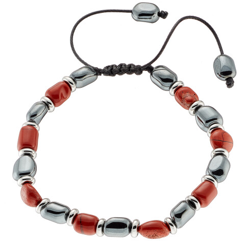 Βραχιόλι αντρικό με πέτρες καφέ και μαύρες ορυκτές δεμένες με ατσάλι