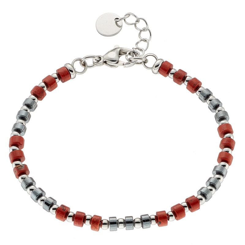 Βραχιόλι αντρικό με πέτρες κόκκινες και μαύρες ορυκτές δεμένες με ατσάλι