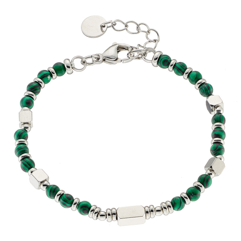 Βραχιόλι αντρικό με πέτρες πράσινες δεμένες με ατσάλι