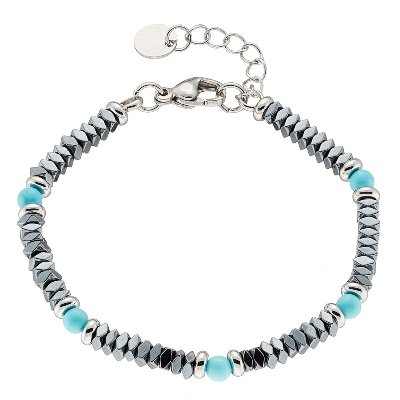 Βραχιόλι αντρικό με πέτρες τιρκουάζ και μαύρες ορυκτές δεμένες με ατσάλι