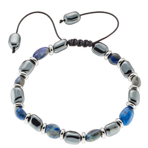 Βραχιόλι αντρικό με πέτρες τιρκουάζ και μαύρες ορυκτές δεμένες με ατσάλι