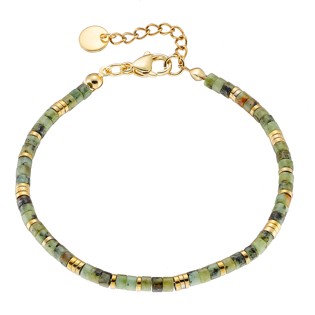 Βραχιόλι αντρικό, πέτρες με πράσινες αποχρώσεις ορυκτές δεμένες με ατσάλι