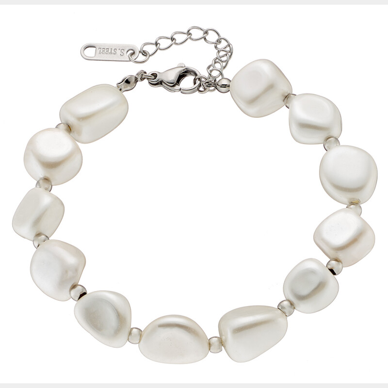 Βραχιόλι γυναικείο ασημί, δεμένες ακανόνιστες πέρλες με μπιλάκια ατσάλι 316L