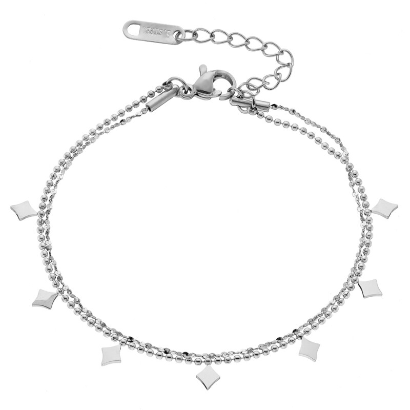 Βραχιόλι γυναικείο ασημί, διπλή με μπιλάκια αλυσίδα & ρόμβους ατσάλι 316L