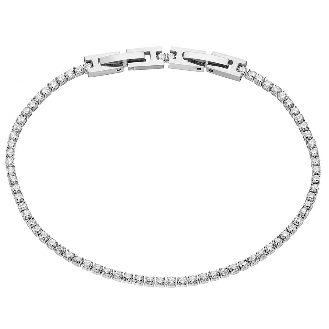 Βραχιόλι γυναικείο ριβιέρα με 2mm ασπρες πέτρες ατσάλι 316L