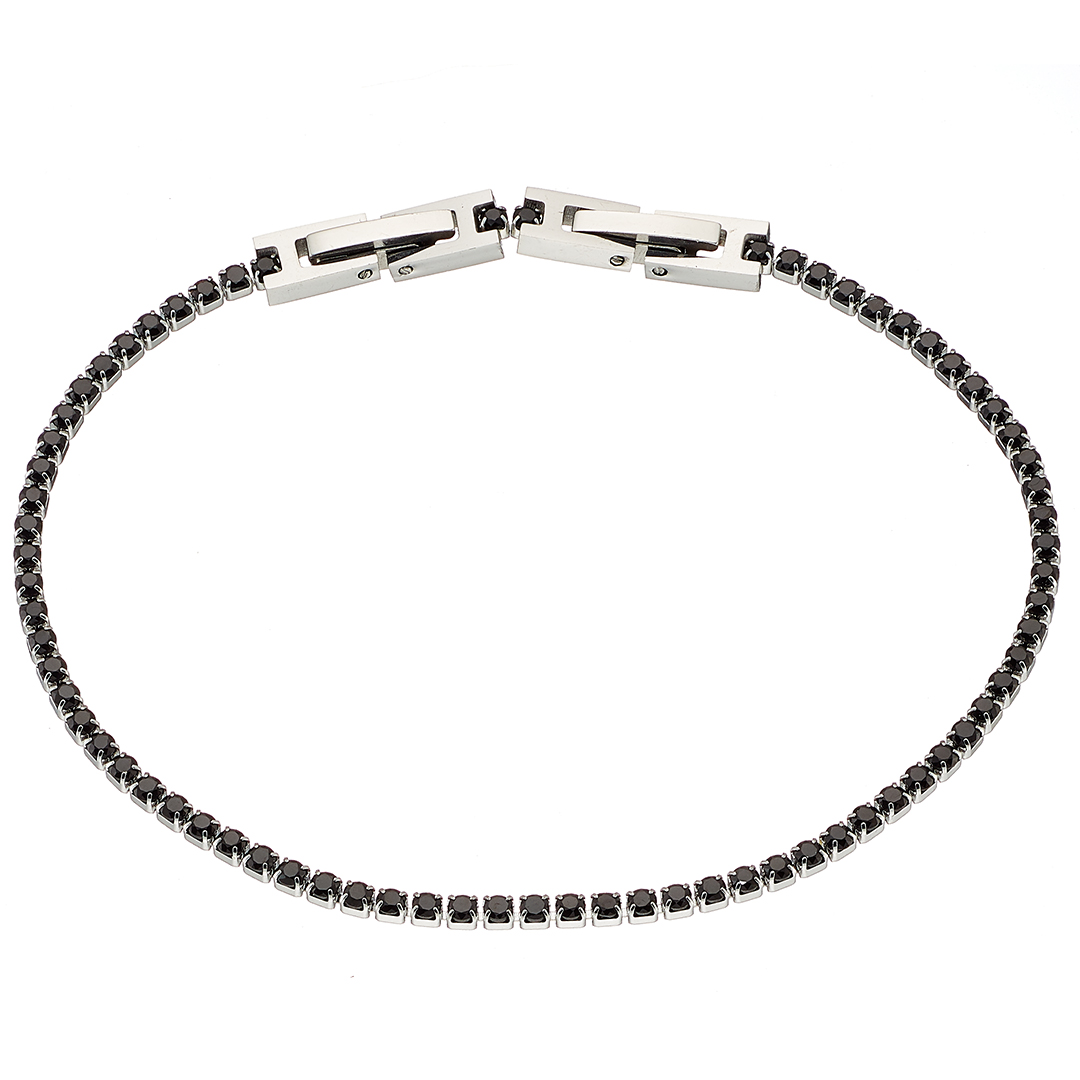Βραχιόλι γυναικείο ριβιέρα με 2mm μαύρες πέτρες ατσάλι 316L