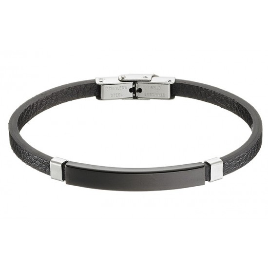 Βραχιόλι ατσάλινο με δέρμα PU ταυτότητα