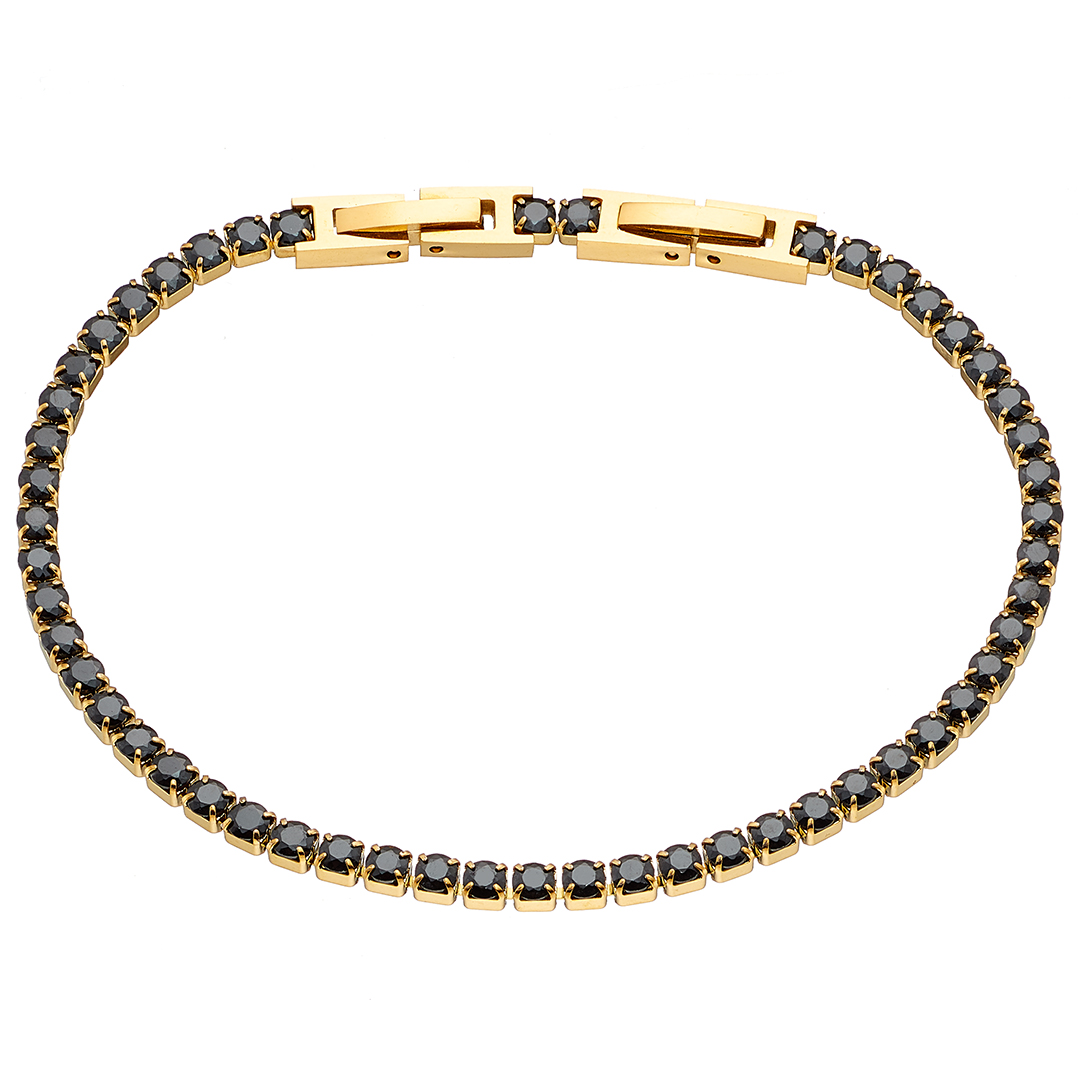 Βραχιόλι επίχρυσο γυναικείο ριβιέρα με 3mm μαύρες πέτρες ατσάλι 316L