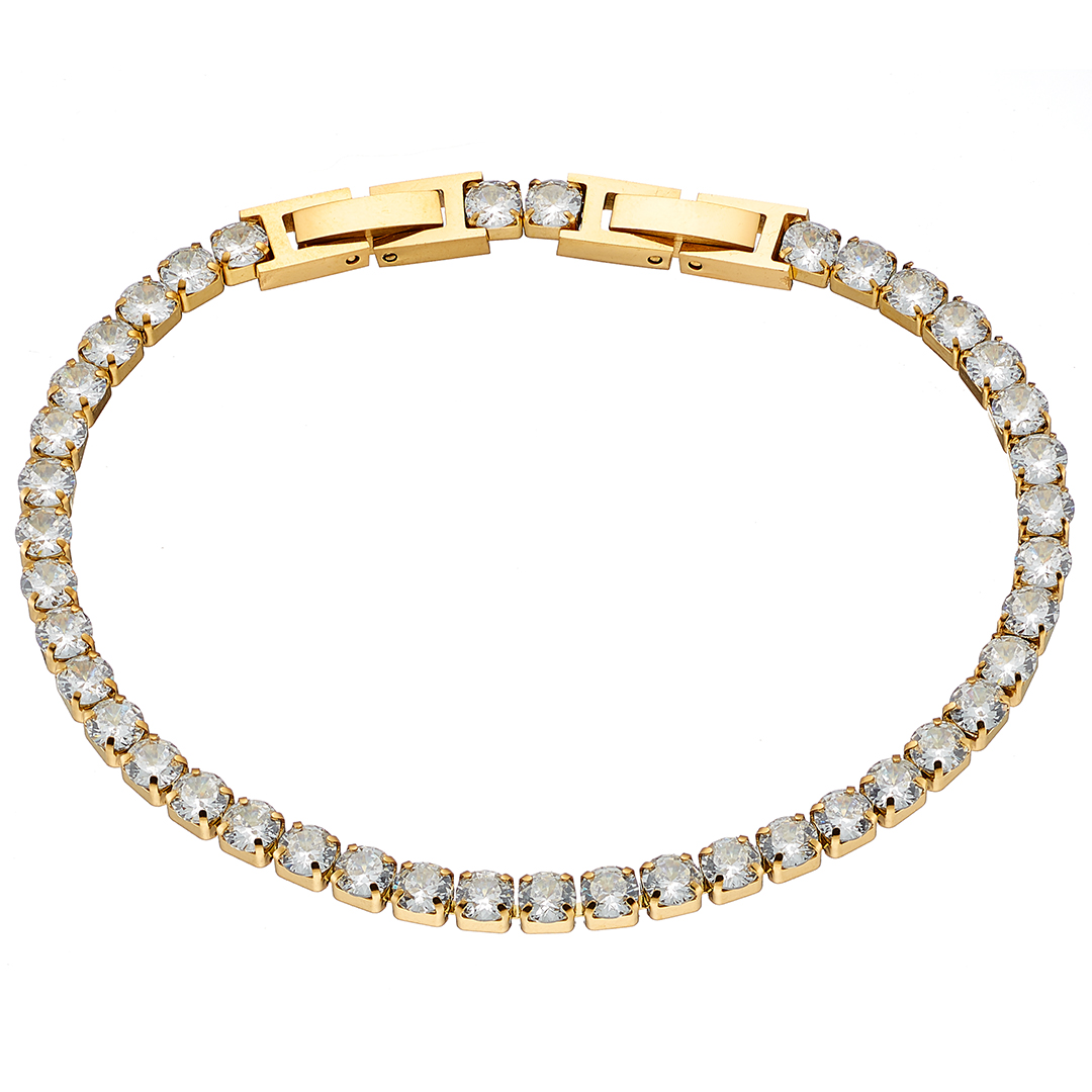 Βραχιόλι επίχρυσο γυναικείο ριβιέρα με 4mm ασπρες πέτρες ατσάλι 316L