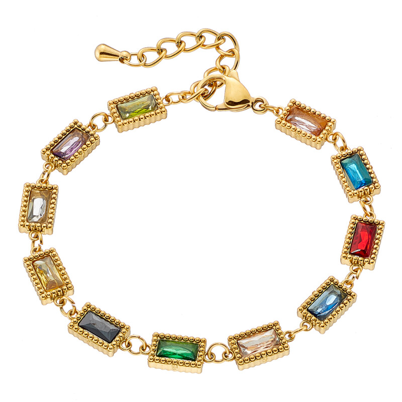 Βραχιόλι επίχρυσο γυναικείο ροζέτα με πολύχρωμες πέτρες ατσάλι 316L