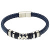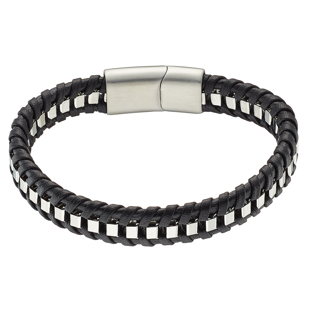 Βραχιόλι με μαύρο δέρμα πλεχτό και ασπρο μέταλλο, ατσάλι 316L