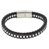 Βραχιόλι με μαύρο δέρμα πλεχτό και επίχρυσο μέταλλο, ατσάλι 316L