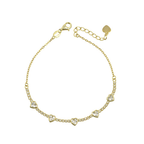 Βραχιόλι Χρυσό τένις με κεντρικές καρδιές και λευκές πέτρες