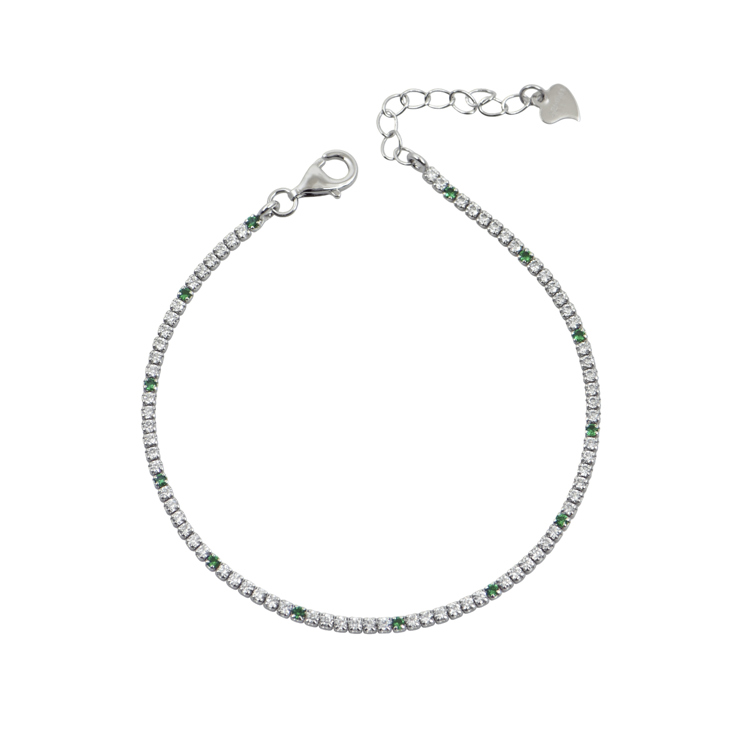 Βραχιόλι τένις με επέκταση 5 πέτρες πράσινες + 1 λευκή 1.5mm