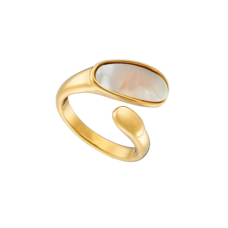 Δαχτυλίδι γυναικείο οβάλ επίχρυσο με φίλντισι ασπρο ατσάλι 316L