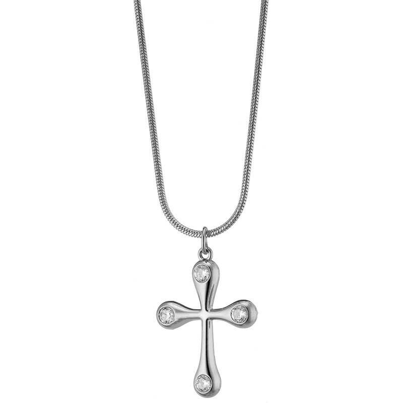 Κολιέ ασημί Σταυρός με ζιργκον ατσάλι 316L