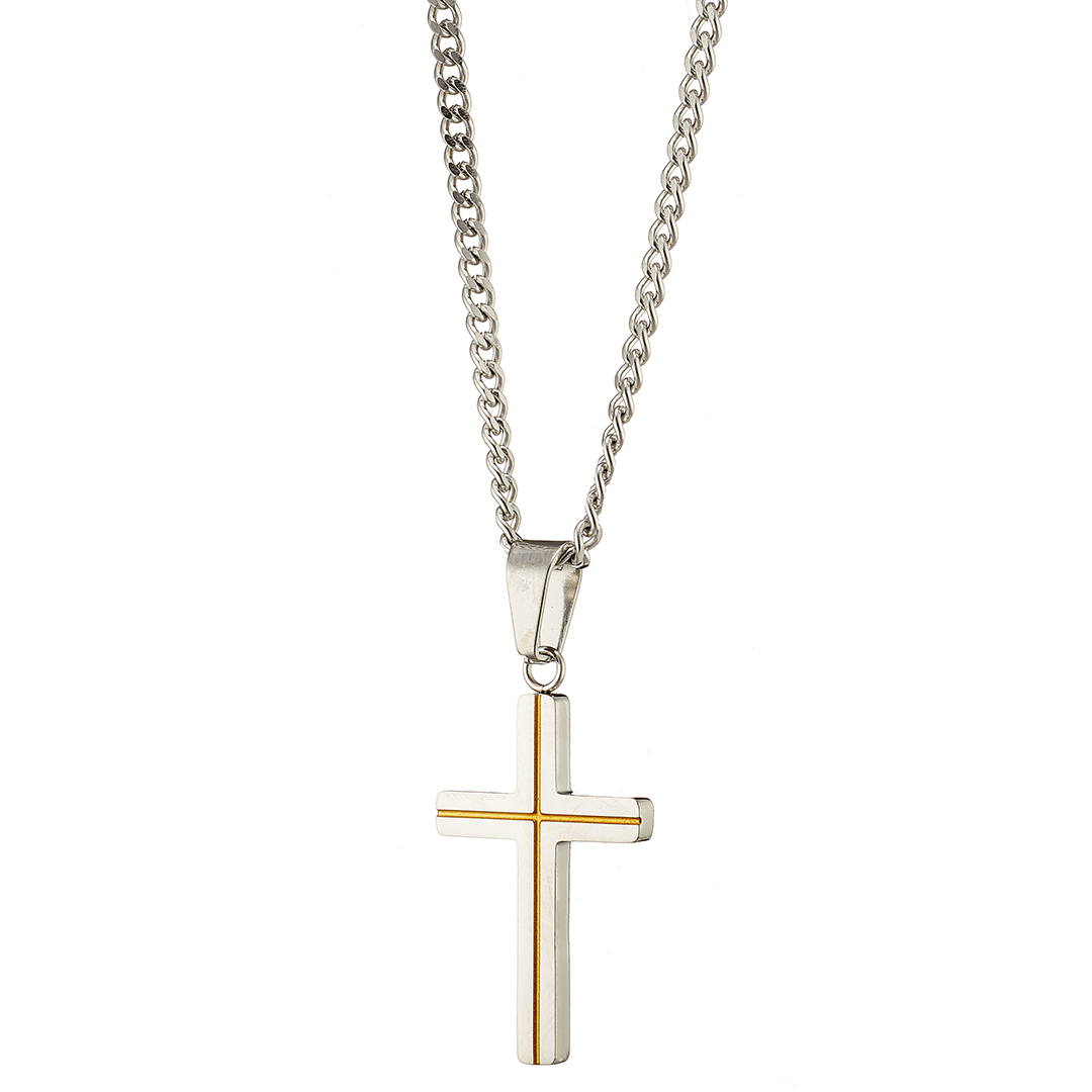 Κολιέ ασημί, Σταυρός με ρίγα επίχρυση ατσάλι 316L