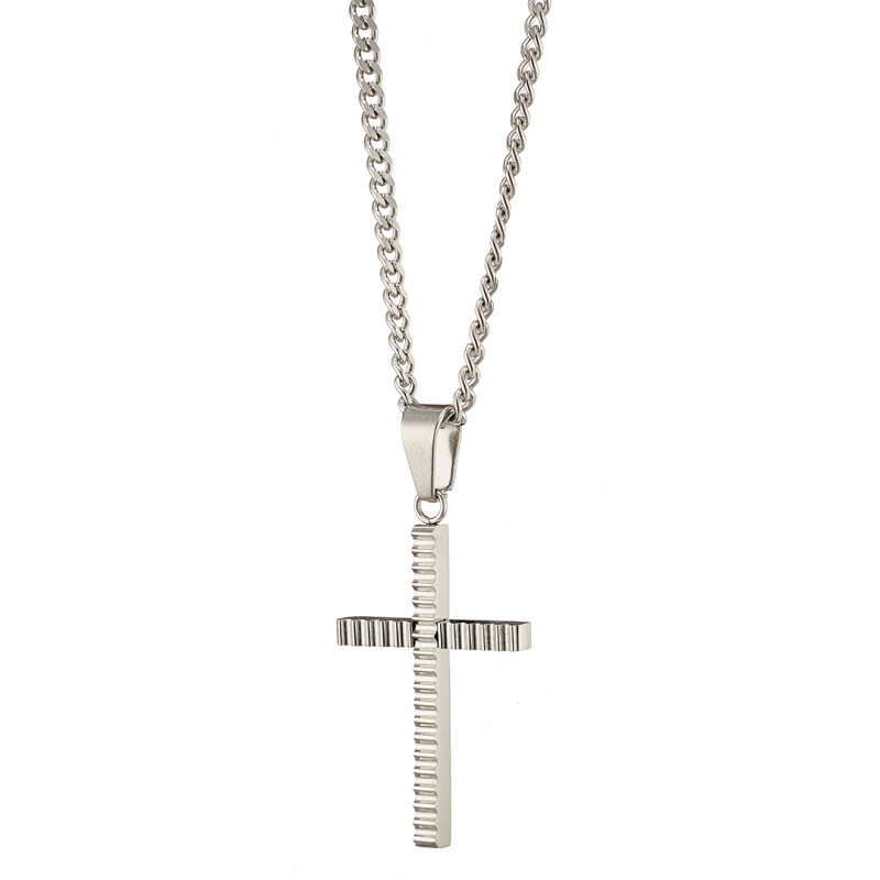 Κολιέ, Σταυρός ασημί ατσάλι 316L