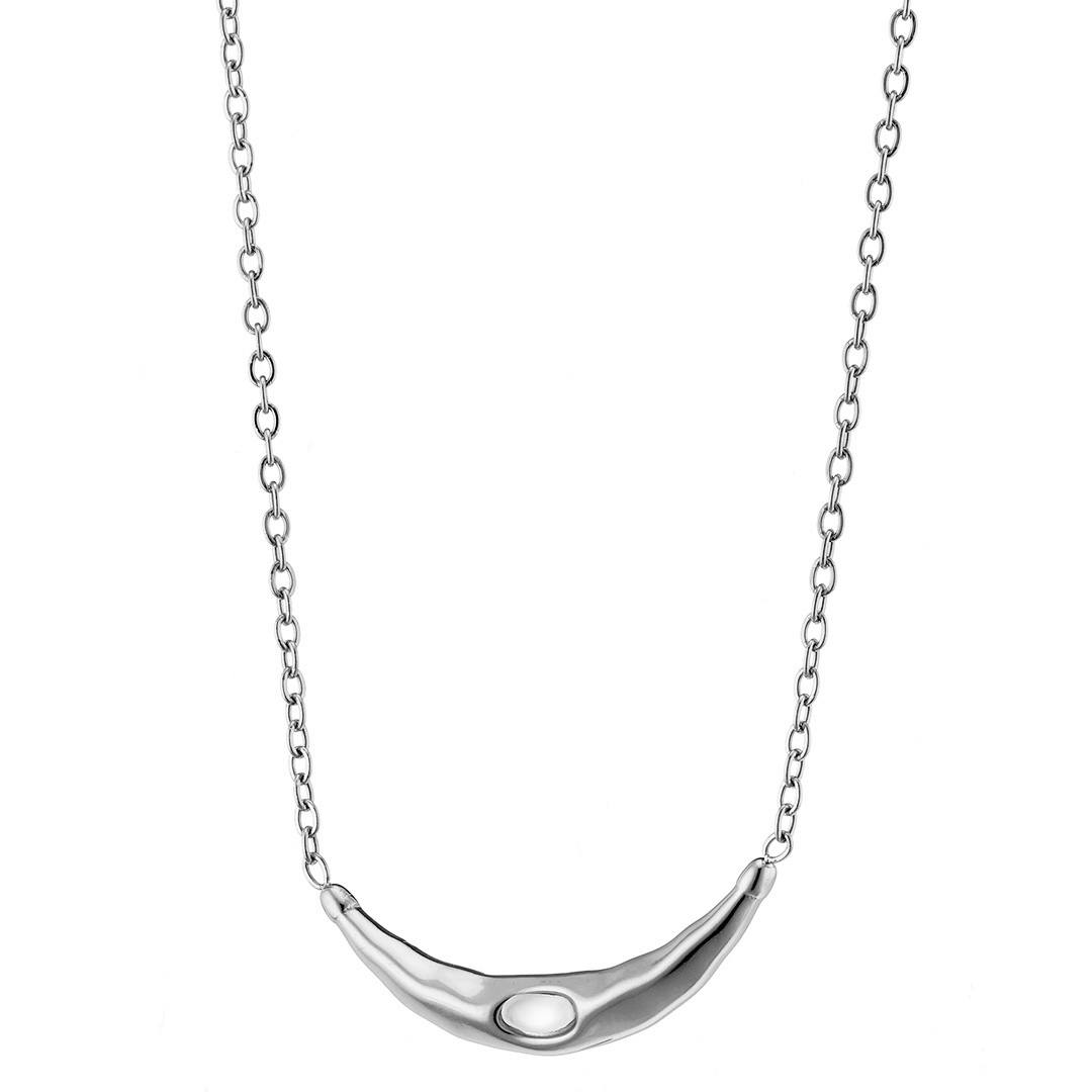 Κολιέ γυναικείο, ασημί, βέργα καμπυλωτή με ένα Cz, ατσάλι 316L
