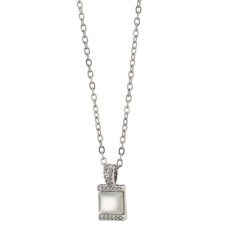 Κολιέ γυναικείο ασημί, τετράγωνο μαργαριτάρι μενταγιόν, δεμένο με ζιργκόν, ατσάλι 316L