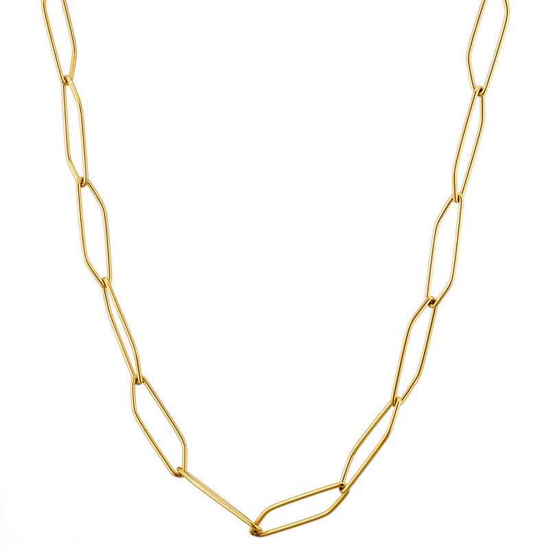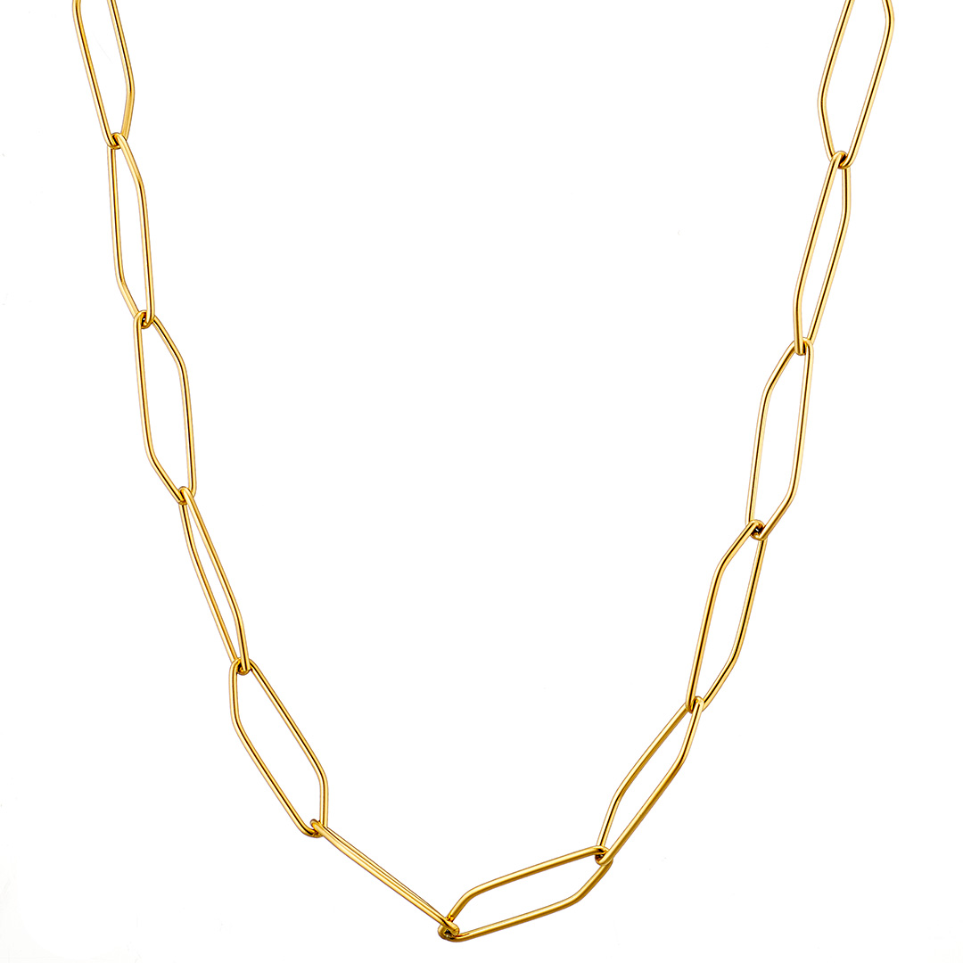 Κολιέ γυναικείο, επιχρυσωμένη αλυσίδα τετράγωνη, ατσάλι 316L