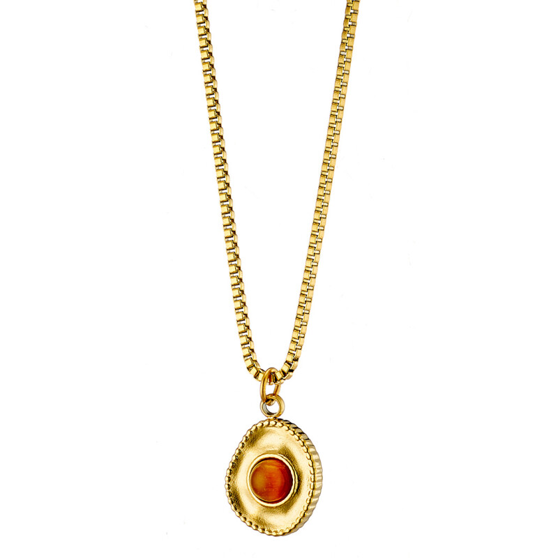 Κολιέ γυναικείο, επιχρυσωμένη αλυσίδα με κόκκινο λίθο, ατσάλι 316L