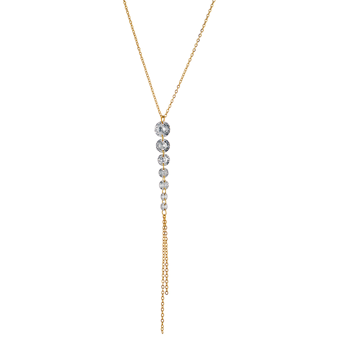 Κολιέ γυναικείο, επιχρυσωμένο, ζιργκόν σε αναλογικά μεγέθη, ατσάλι 316L