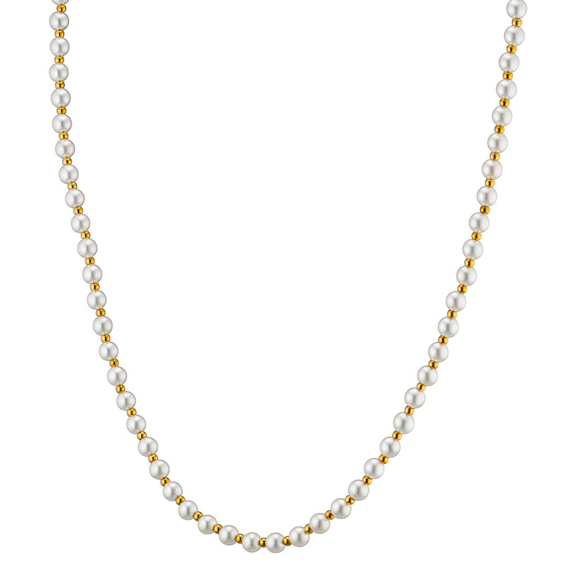 Κολιέ γυναικείο, μαργαριτάρια με επιχρυσωμένες μπίλιες & κούμπωμα, ατσάλι 316L