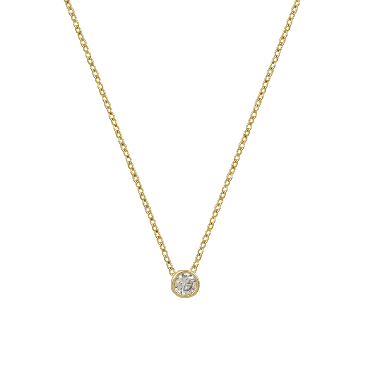 Κολιέ επίχρυσο με αλυσίδα, μονόπετρο Cz ασήμι 925