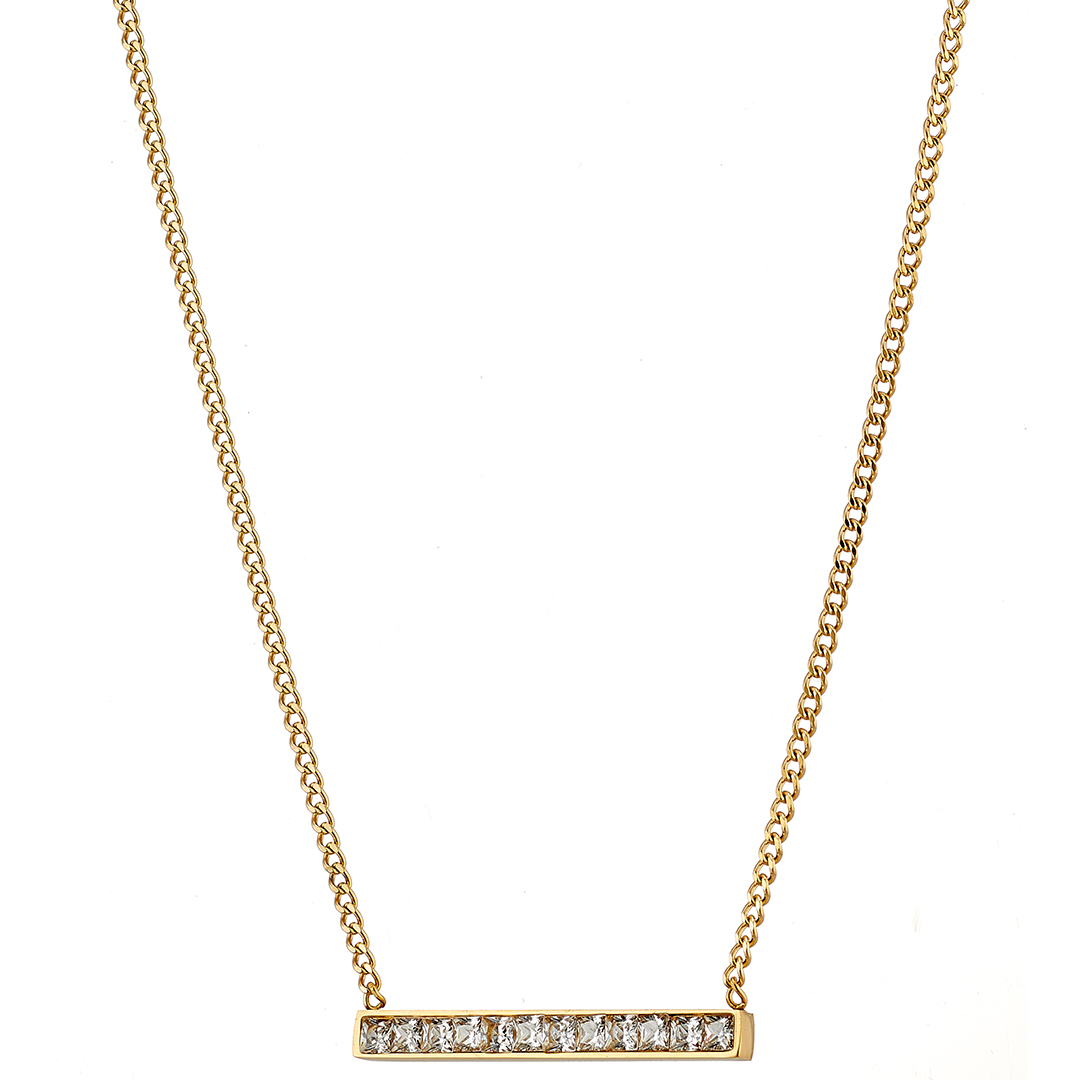 Κολιέ επίχρυσο μπάρα με ζιργκόν ατσάλι 316L