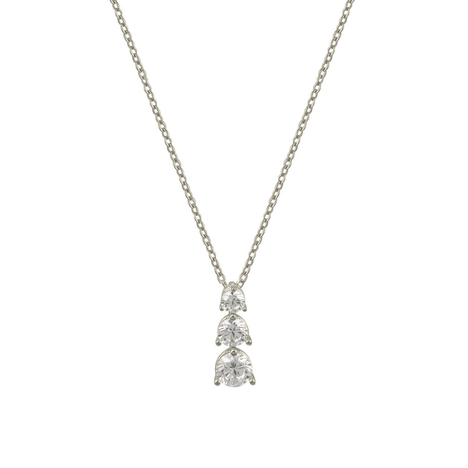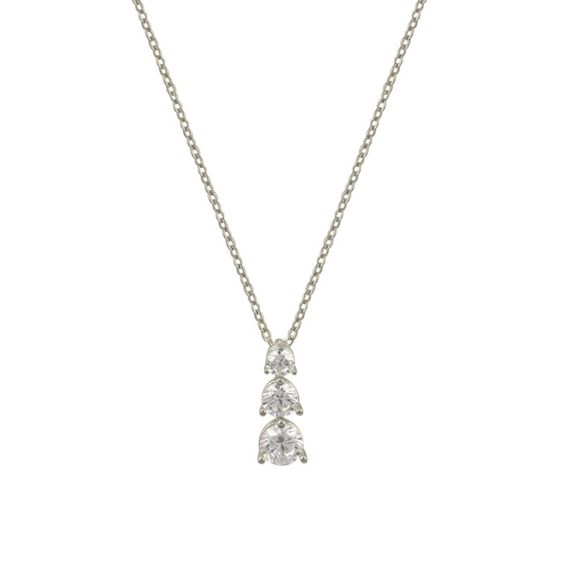 Κολιέ λευκό με αλυσίδα, τρία white Cz ασήμι 925