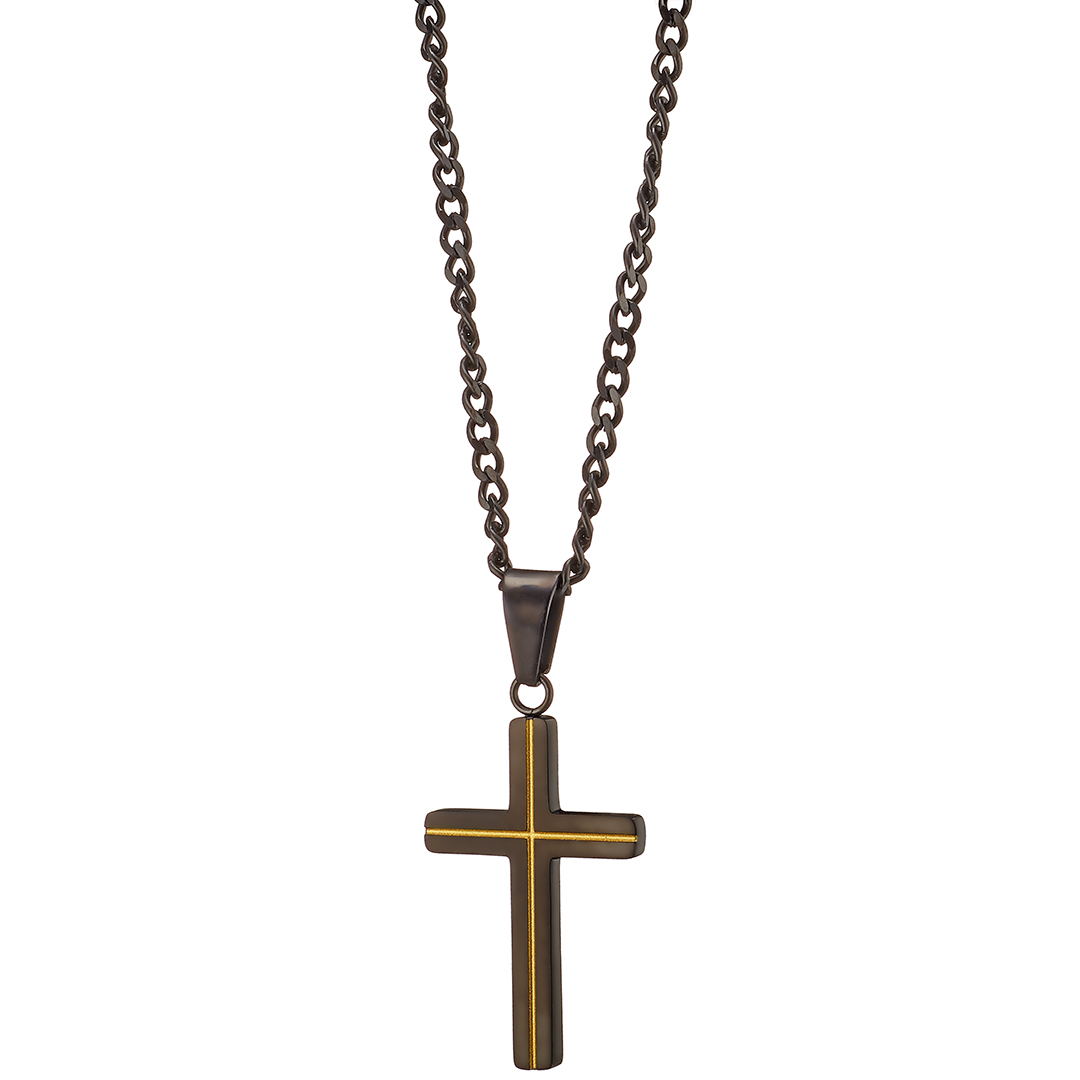 Κολιέ μαύρο, Σταυρός με ρίγα επίχρυση ατσάλι 316L