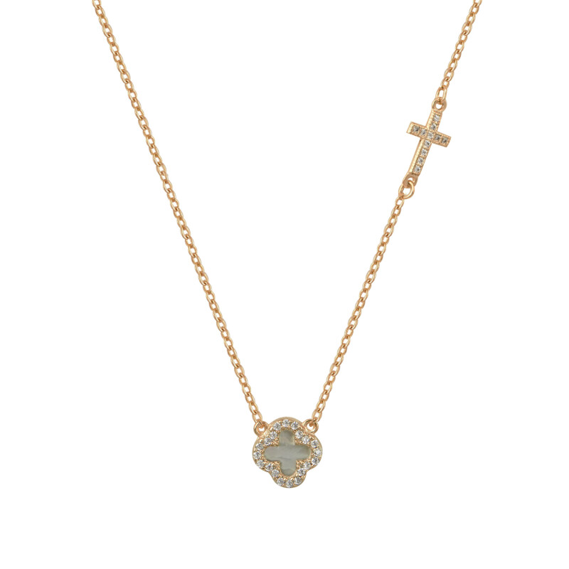 Κολιέ Ρόζ Χρυσό με αλυσίδα, Cz τετράφυλλο τριφύλλι ασήμι 925