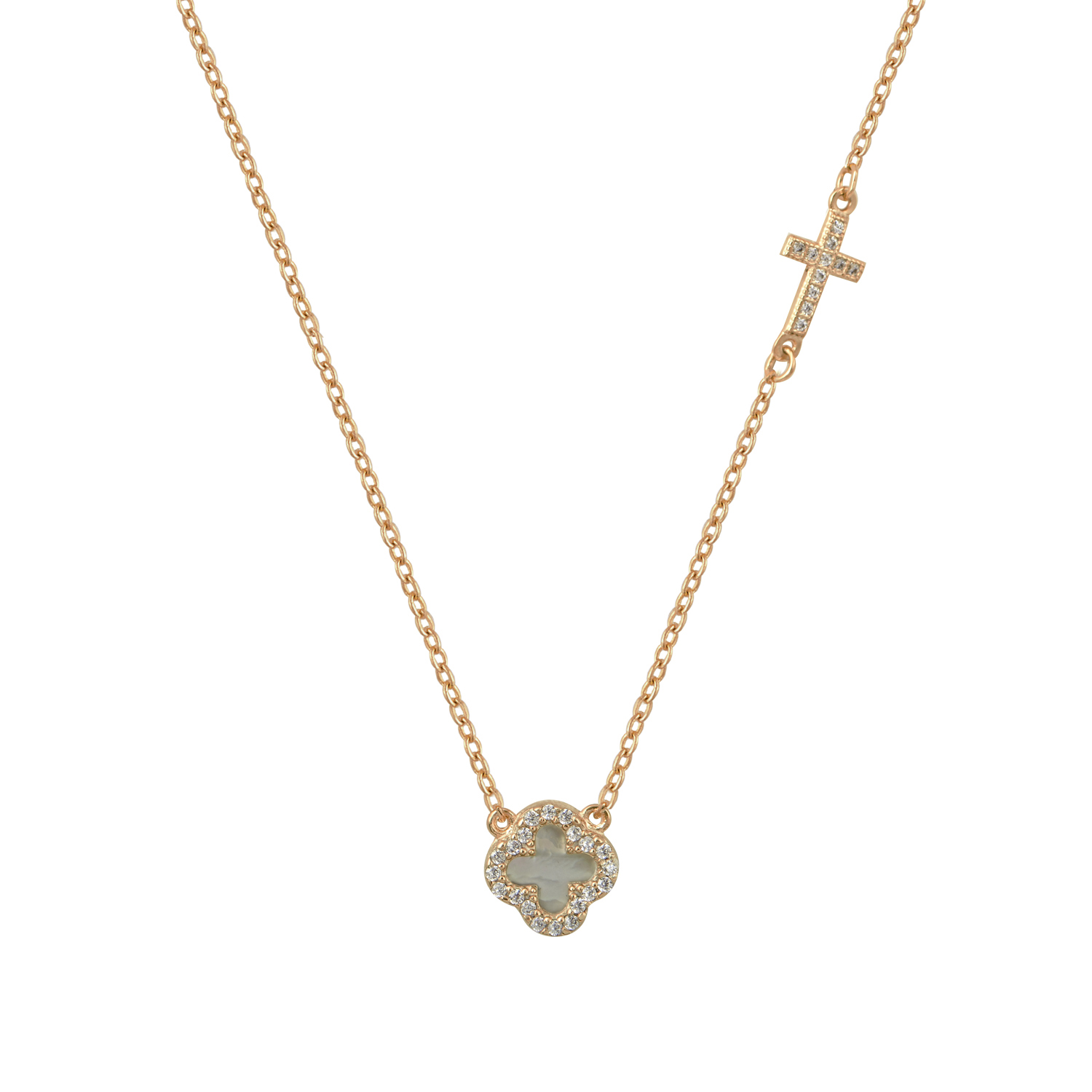 Κολιέ Ρόζ Χρυσό με αλυσίδα, Cz τετράφυλλο τριφύλλι ασήμι 925
