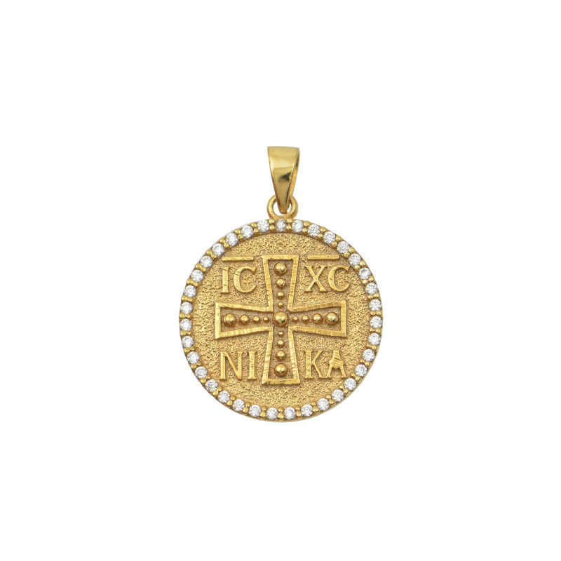 Μοτίφ, Κωνσταντινάτο διπλής όψεως με Ζιργκόν , μεγεθος 1.70cm σε χρυσό Κ14