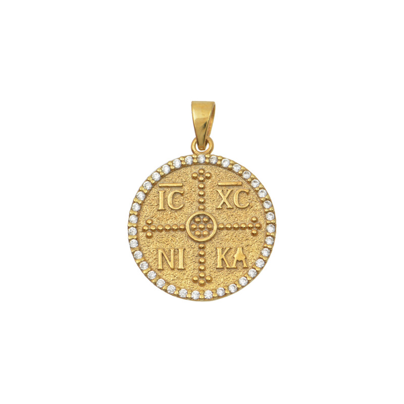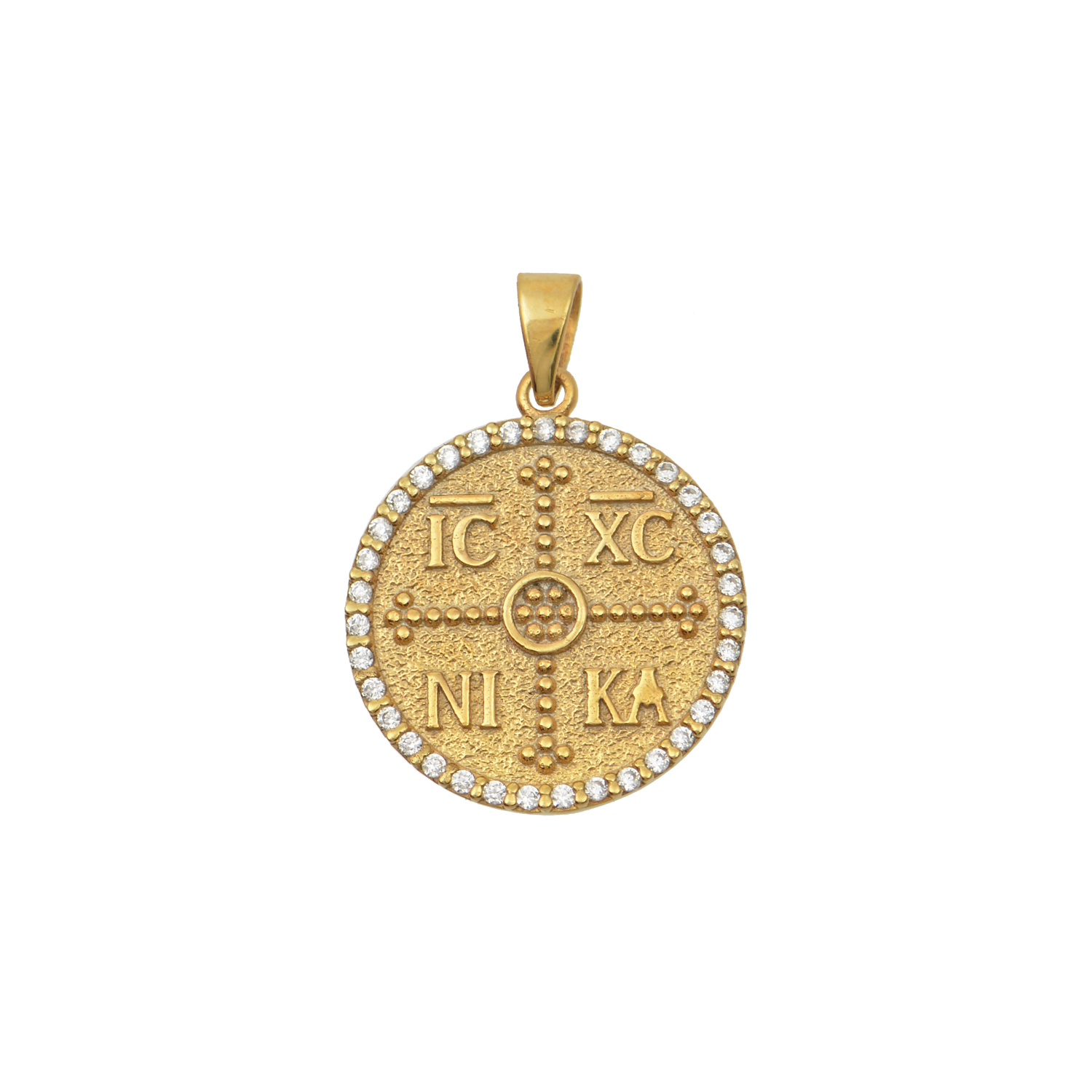 Μοτίφ, Κωνσταντινάτο διπλής όψεως με Ζιργκόν , μεγεθος 1.70cm σε χρυσό Κ14