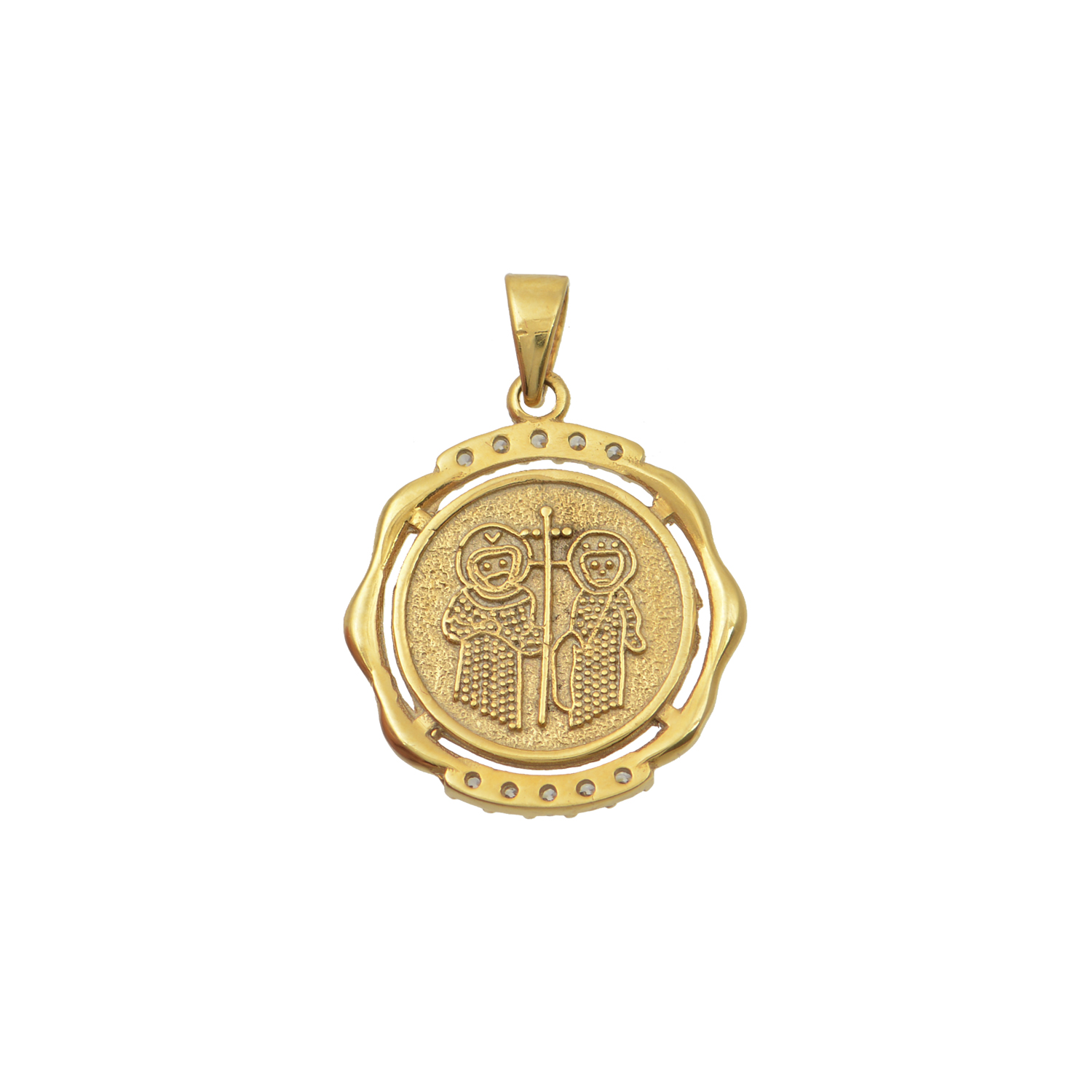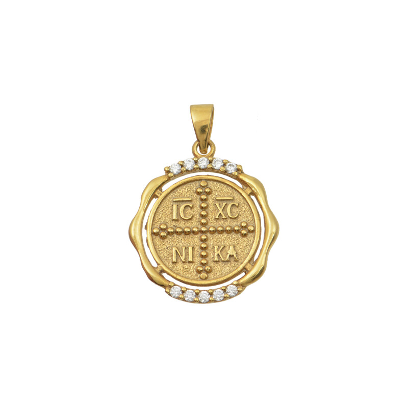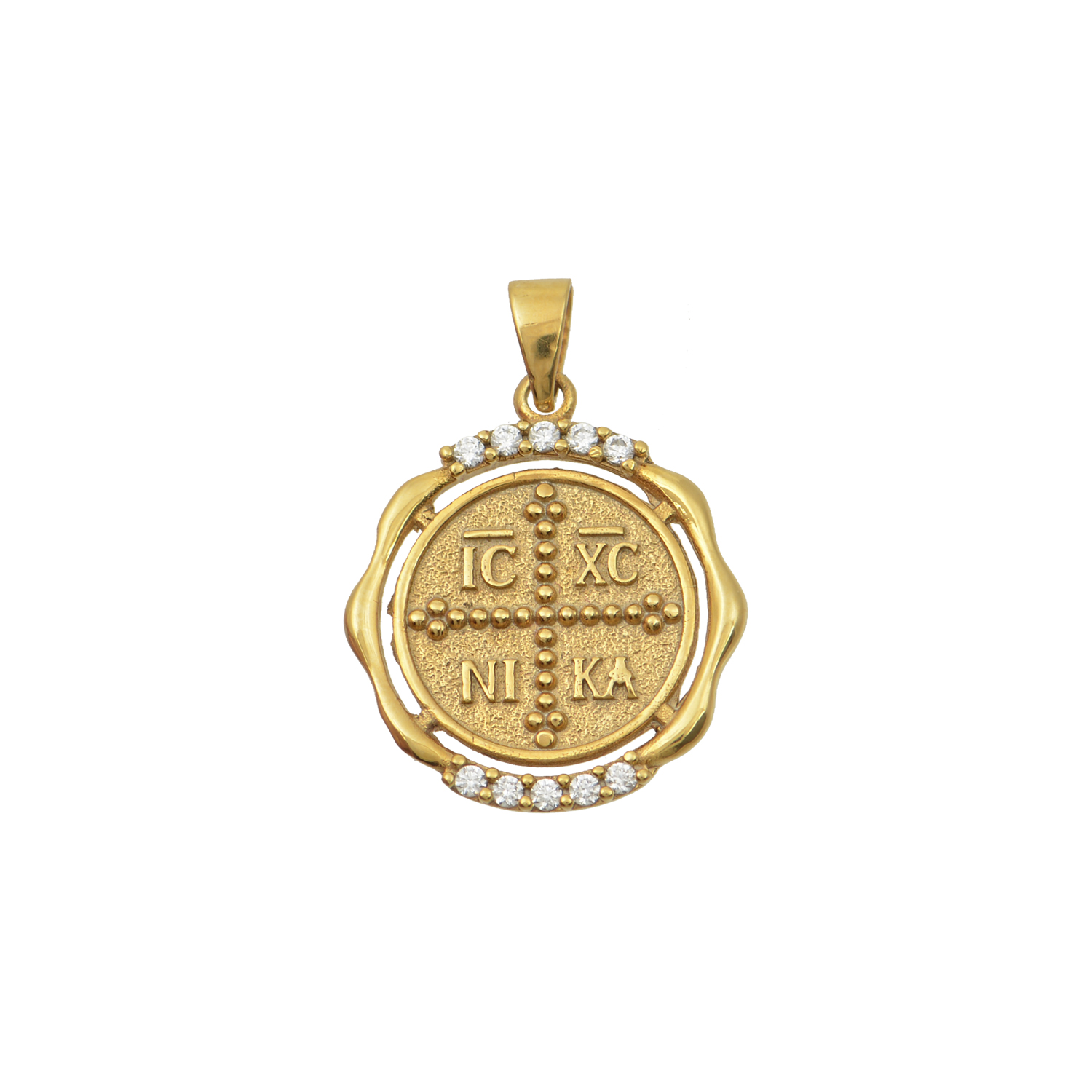 Μοτίφ, Κωνσταντινάτο διπλής όψεως με πέντε Ζιργκόν , μεγεθος 1.70cm σε χρυσό Κ14
