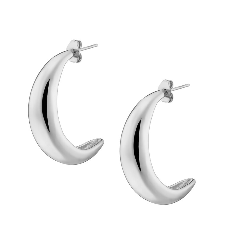Σκουλαρίκια, ασημί μισοφέγγαροι κρίκοι ατσάλι 316L