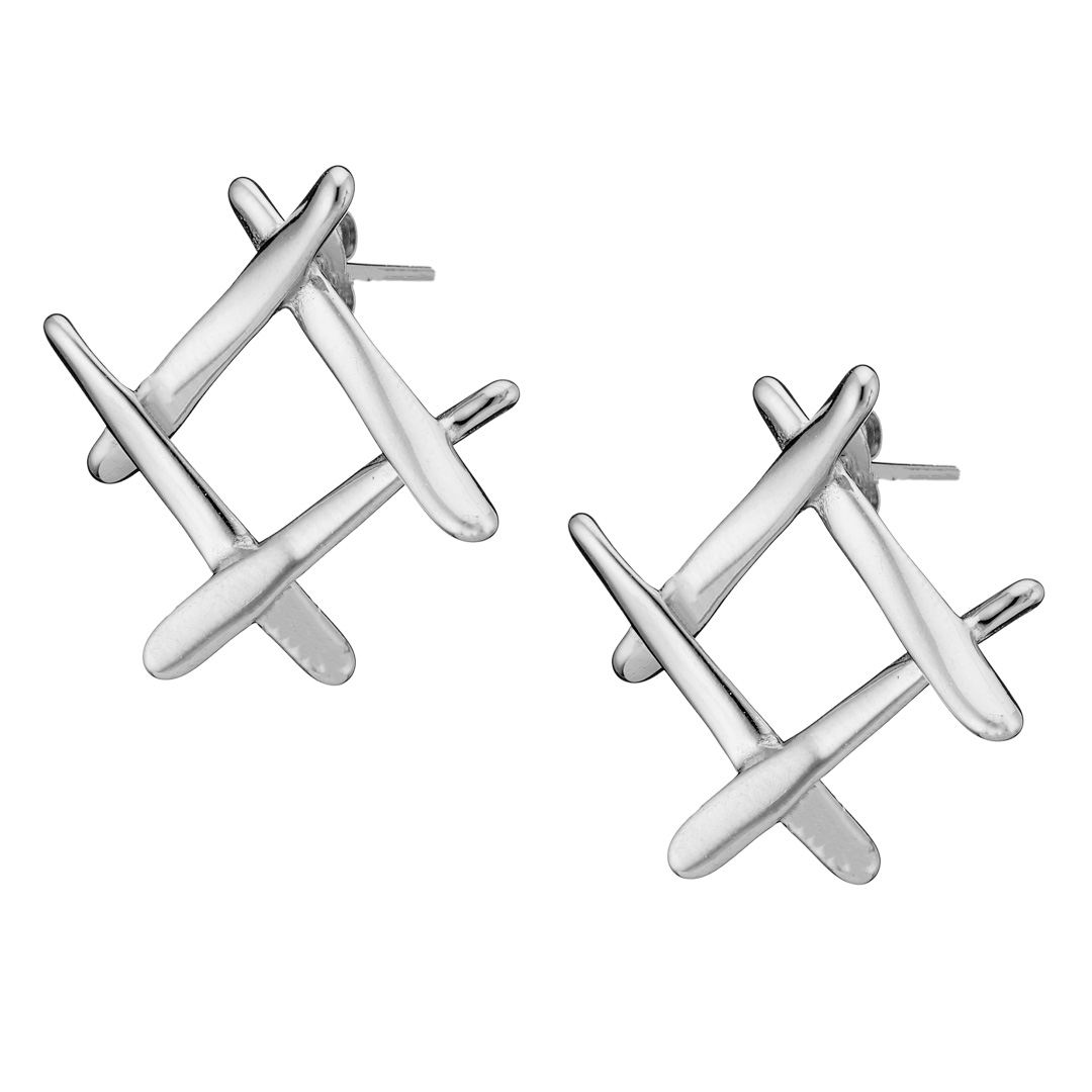 Σκουλαρίκια, ασημί minimal, σχήμα πλέγμα ατσάλι 316L