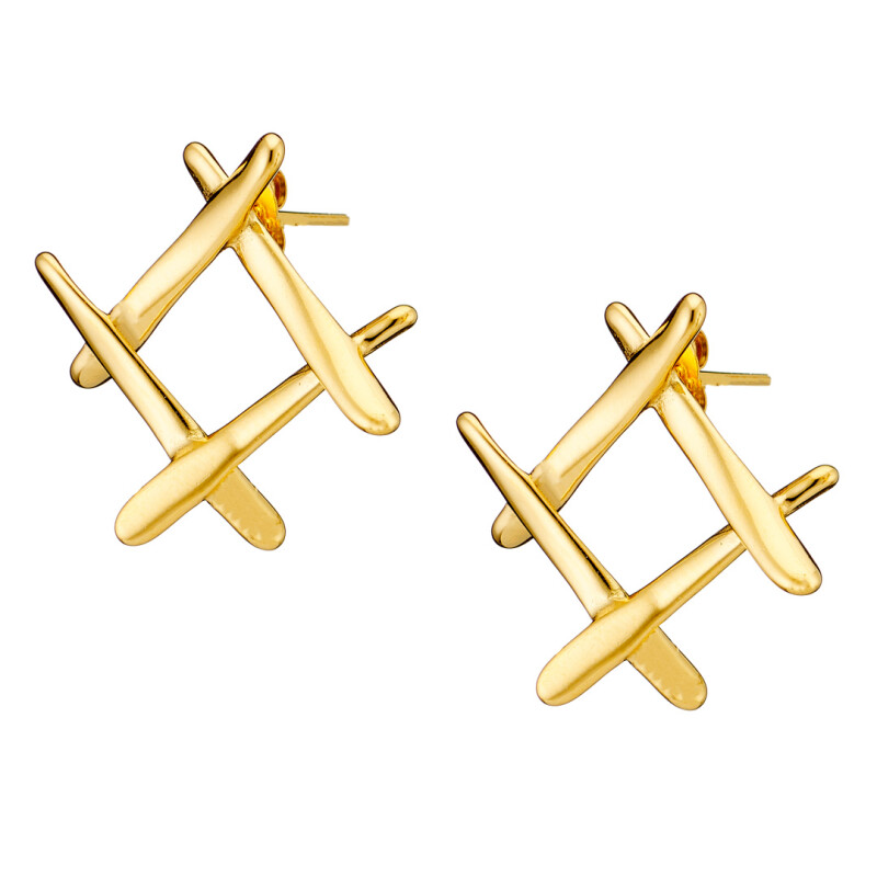 Σκουλαρίκια, επιχρυσωμένα minimal σχήμα πλέγμα ατσάλι 316L
