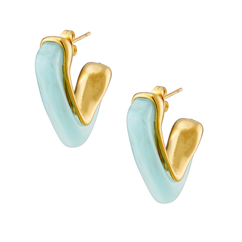Σκουλαρίκι επίχρυση καρδιά με Aqua σμάλτο ατσάλι 316L