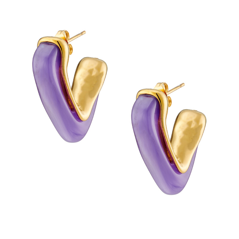 Σκουλαρίκι επίχρυση καρδιά με purlpe σμάλτο ατσάλι 316L