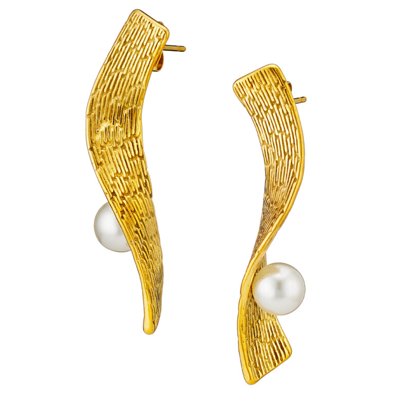 Σκουλαρίκι επίχρυσο S με μαργαριτάρι ατσάλι 316L