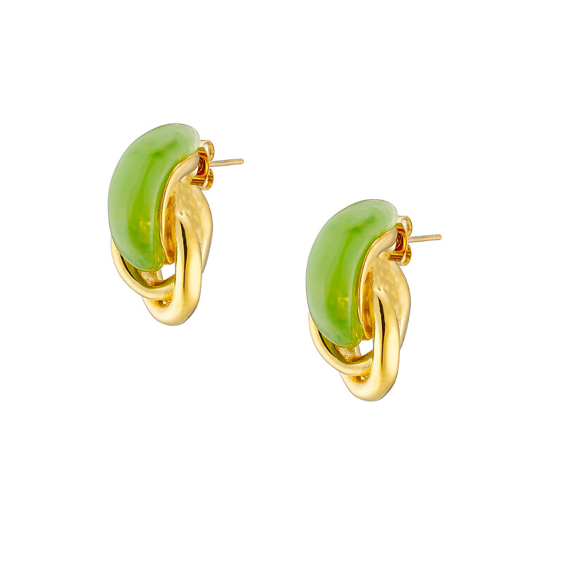 Σκουλαρίκι επίχρυσoι δύο κρίκοι με fern green σμάλτο ατσάλι 316L