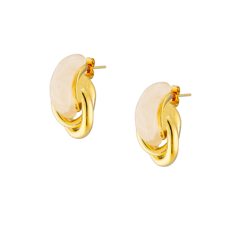 Σκουλαρίκι επίχρυσoι δύο κρίκοι με roz water opal σμάλτο ατσάλι 316L